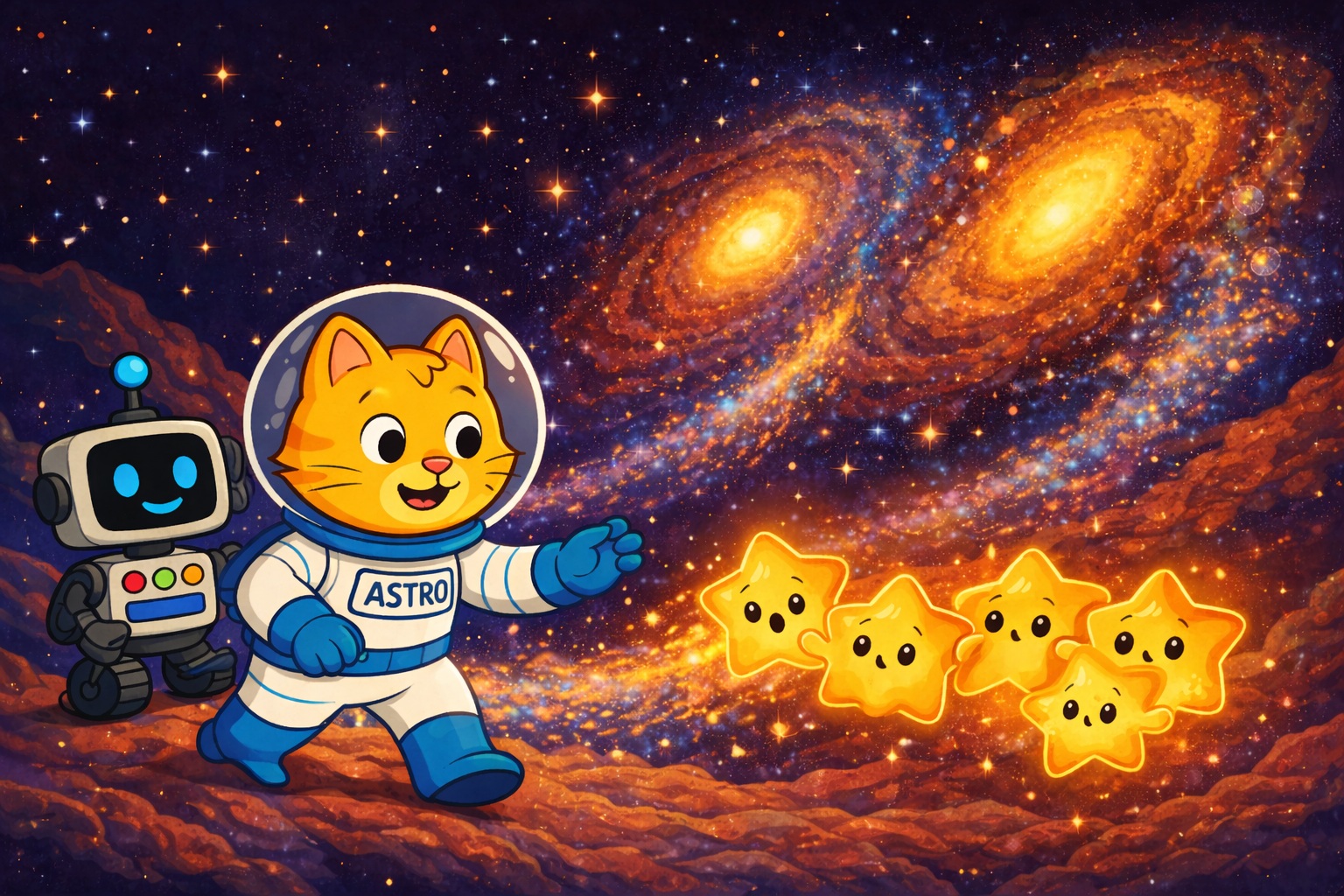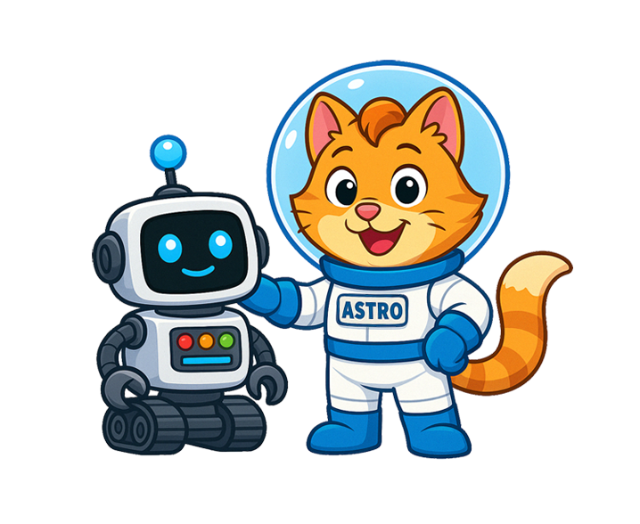Astro Kotek i Zippy zabierają dzieci w fascynującą podróż po kosmosie, gdzie każda przygoda to okazja do poznania planet, gwiazd i tajemnic Wszechświata.