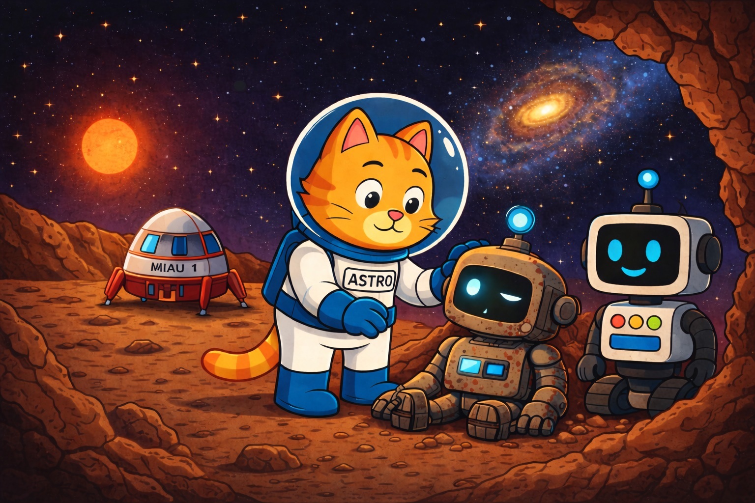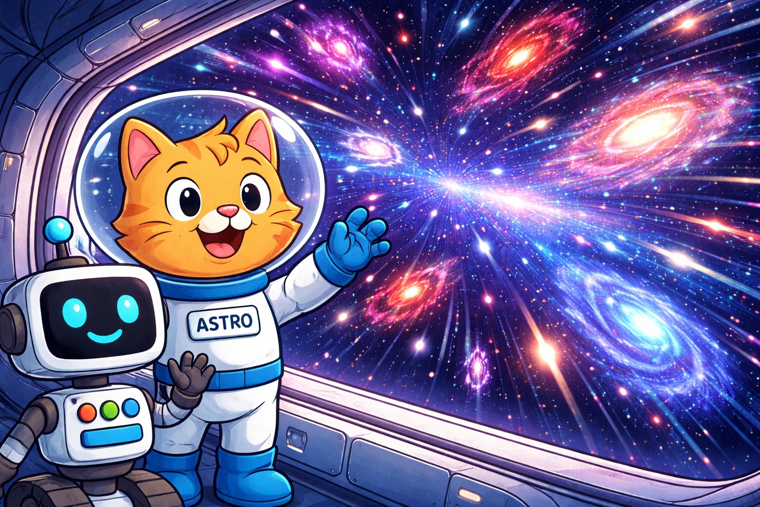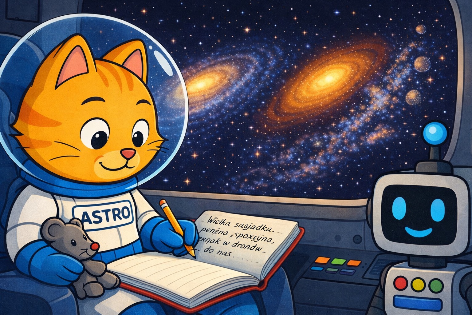 Astro Kotek to ciekawski i odważny kotek, a Zippy to mądry i wesoły robot. Razem tworzą duet, który dzieci pokochają od pierwszej strony.