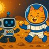 Rakieta „Miau-1” unosiła się lekko na orbicie Ziemi, a Astro kotek z radością dryfował po kabinie, robiąc salta i przewroty w stanie nieważkości. Zippy, robotyczny przyjaciel kotka, obserwował go z uśmiechem, jednocześnie sprawdzając systemy pokładowe.