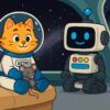 Astrokotek przeciągnął się leniwie na miękkim fotelu, przytulił swojego pluszowego szczurka o imieniu Gryzio i spojrzał na Zippy’ego — błyszczącego robota z okrągłą głową i trzema migającymi oczkami.