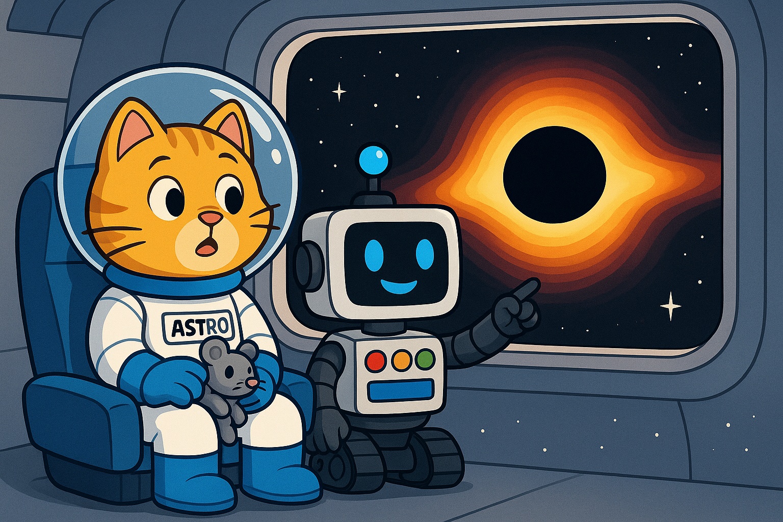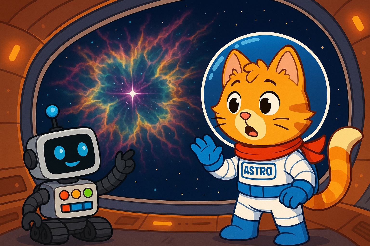 Gwiazdy, mgławice i czarne dziury 28. Astro Kotek – Mgławica Oriona „Miau-1” płynęła miękko przez noc kosmosu. Za iluminatorem widać było znajome kształty gwiazdozbioru Oriona. Trzy jasne gwiazdy jego pasa ... Więcej