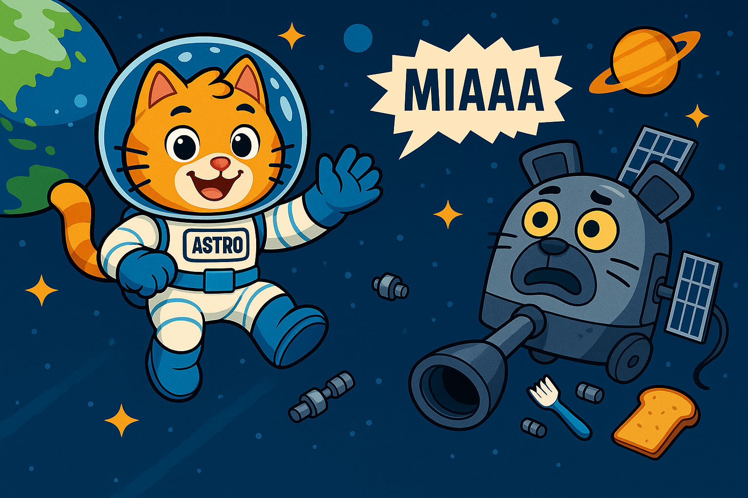 Blisko ziemi 04. Astro Kotek – Międzynarodowa Stacja Kosmiczna Rakieta „Miau-1” cicho sunęła przez przestrzeń kosmiczną, mieniąc się w blasku odległych gwiazd. W środku Astro właśnie robił fikołka ... Więcej